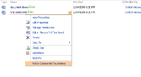 De surcroît, le document est bien enregistré en tant que Commande Fournisseur, il est donc typé. Il est possible de réexploiter cette information dans Sharepoint au travers de vues spécifiques, au travers d'actions personnelles (sections suivantes) pour cibler des fonctionnalités en fonction d'un type de contenu bien précis.